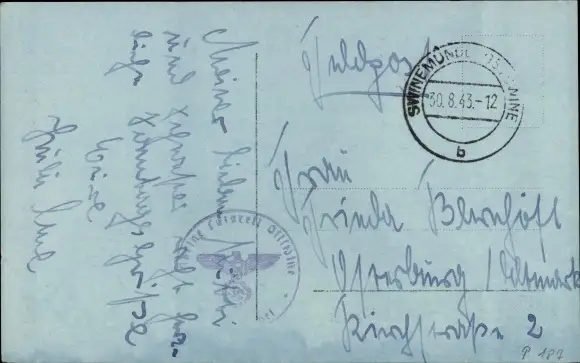 Zustand, siehe Scan, gelaufen, 1943 - ca 14 cm X 9 cm