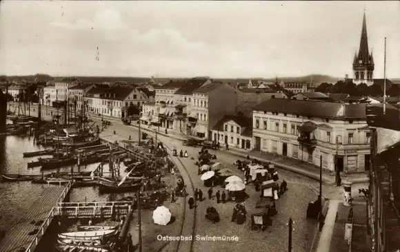 Ak Świnoujście Swinemünde Pommern, Hafenpromenade