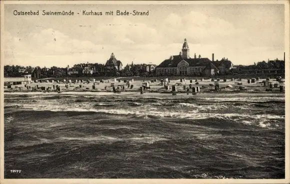 Ak Świnoujście Swinemünde Pommern, Kurhaus mit Badestrand