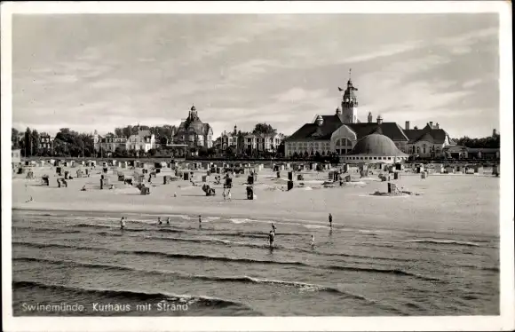 Ak Świnoujście Swinemünde Pommern, Kurhaus mit Strand