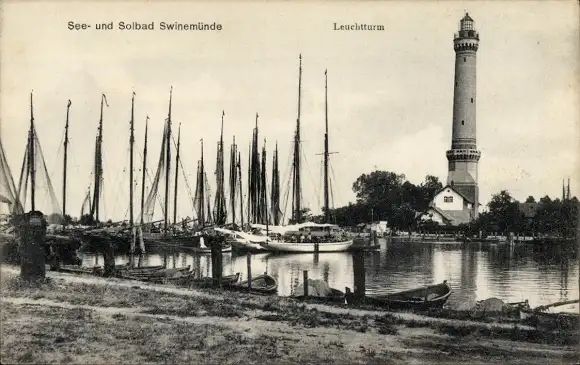 Ak Świnoujście Swinemünde Pommern, Leuchtturm, Boote