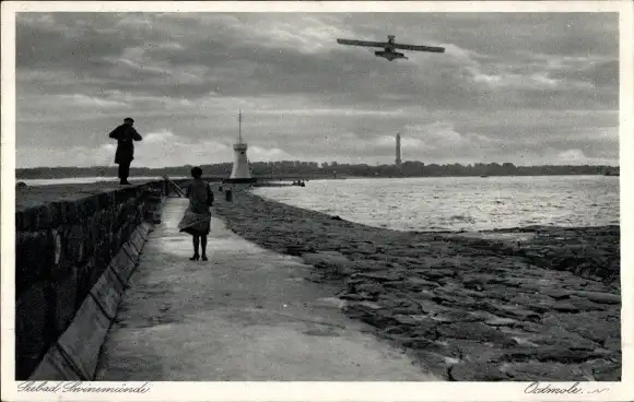 Ak Świnoujście Swinemünde Pommern, Ostmole, Flugzeug