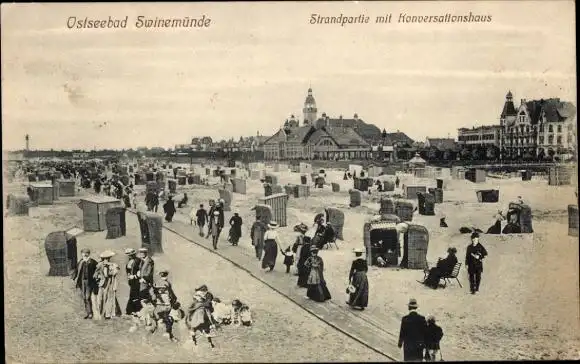 Ak Świnoujście Swinemünde Pommern, Ostseebad Strandpartie, Konversationshaus, Badende