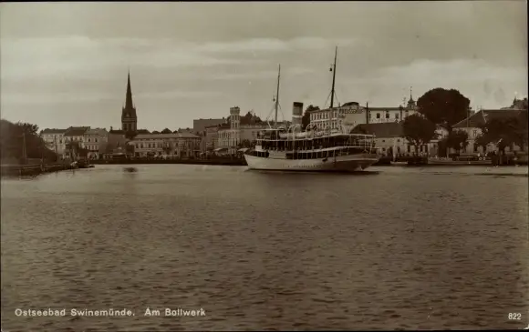 Ak Świnoujście Swinemünde Pommern, Partie am Bollwerk, Dampfer
