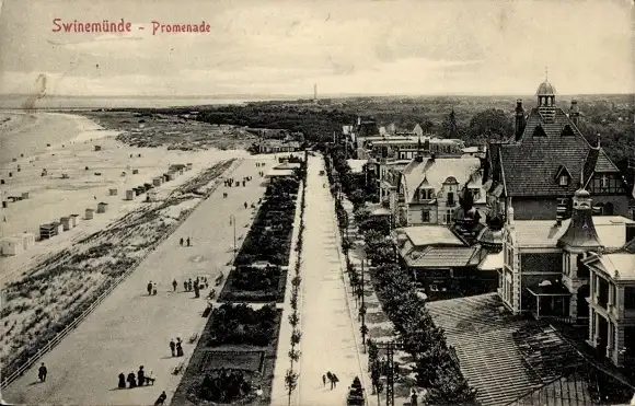 Ak Świnoujście Swinemünde Pommern, Promenade, Strand