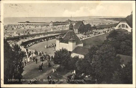 Ak Świnoujście Swinemünde Pommern, Promenade, Strand, Hotel Splendid