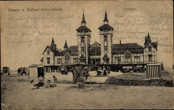 Ak Świnoujście Swinemünde Pommern, Seebrücke, Strand
