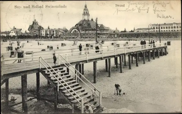 Ak Świnoujście Swinemünde Pommern, Strand, Kurhaus, Seebrücke