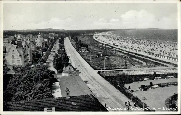 Ak Świnoujście Swinemünde Pommern, Strand, Promenade, Hotels