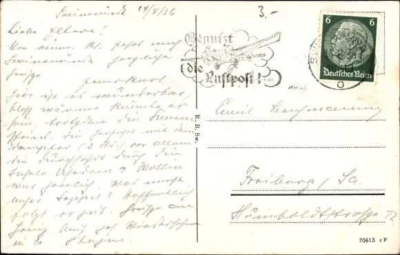 Zustand, siehe Scan, gelaufen, 1936 - ca 14 cm X 9 cm