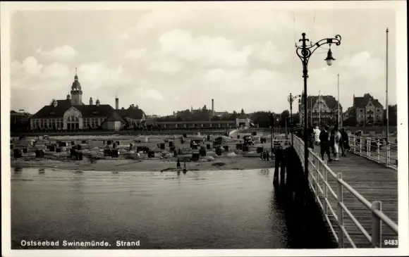 Ak Świnoujście Swinemünde Pommern, Strand, Seebrücke