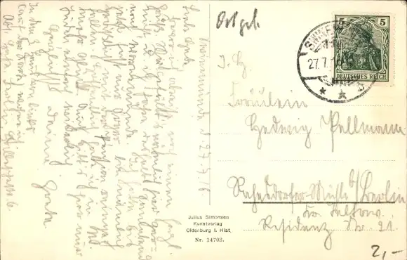 Zustand, siehe Scan, gelaufen, 1916 - ca 14 cm X 9 cm