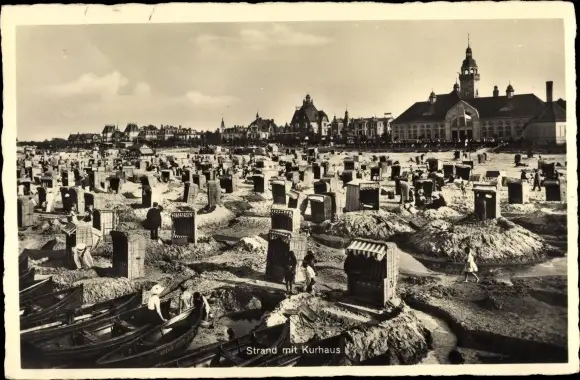 Ak Świnoujście Swinemünde Pommern, Strand mit Kurhaus
