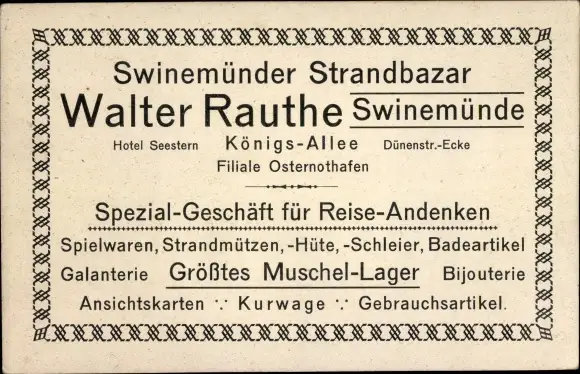 Ak Świnoujście Swinemünde Pommern, Strandbazar, Hotel Seestern, Walter Rauthe, Stadtplan
