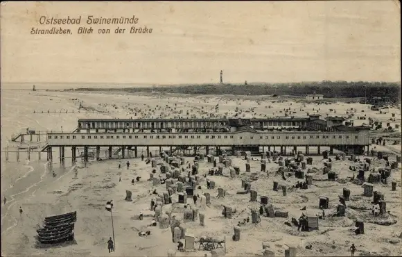 Ak Świnoujście Swinemünde Pommern, Strandleben, Brücke