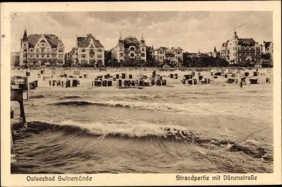 Ak Świnoujście Swinemünde Pommern, Strandpartie mit Dünenstraße