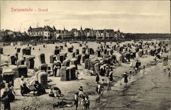 Ak Świnoujście Swinemünde Pommern, Strandpartie zur Hochsaison