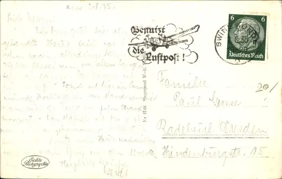 Zustand, siehe Scan, gelaufen, 1935 - ca 14 cm X 9 cm
