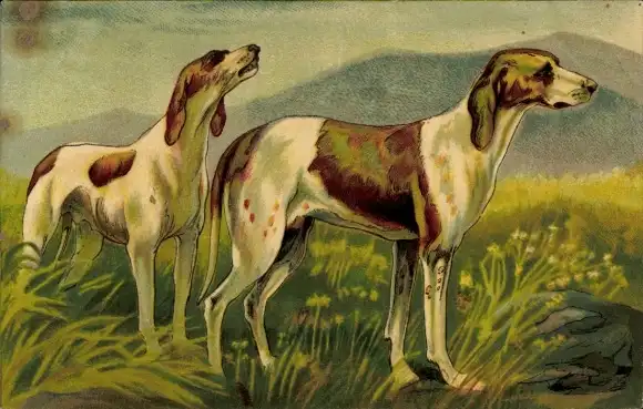 Ak zwei Jagdhunde stehen auf einer Wiese