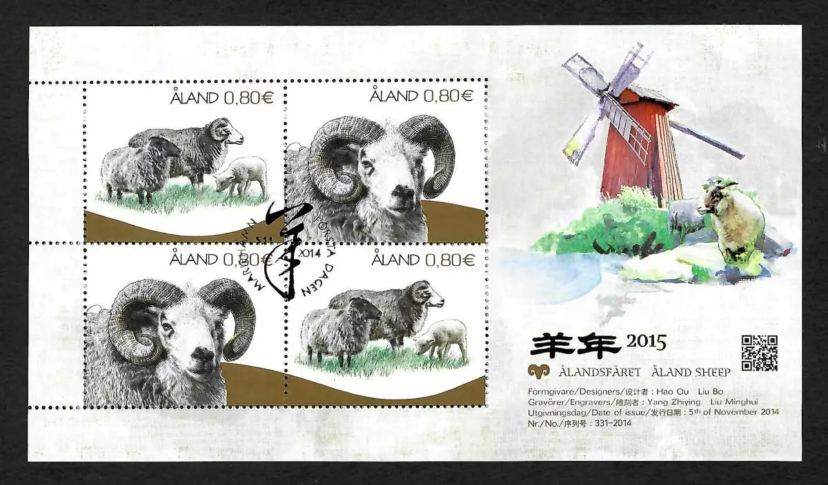 Aland 2015: Schafe, Marie Hamn, Block, gestempelt