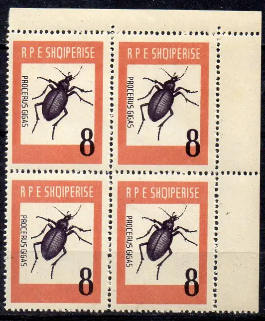 Albanien, Mi-Nr. 737 **, Eckrand 4´er-Block, Insekten - Riesenlaufkäfer