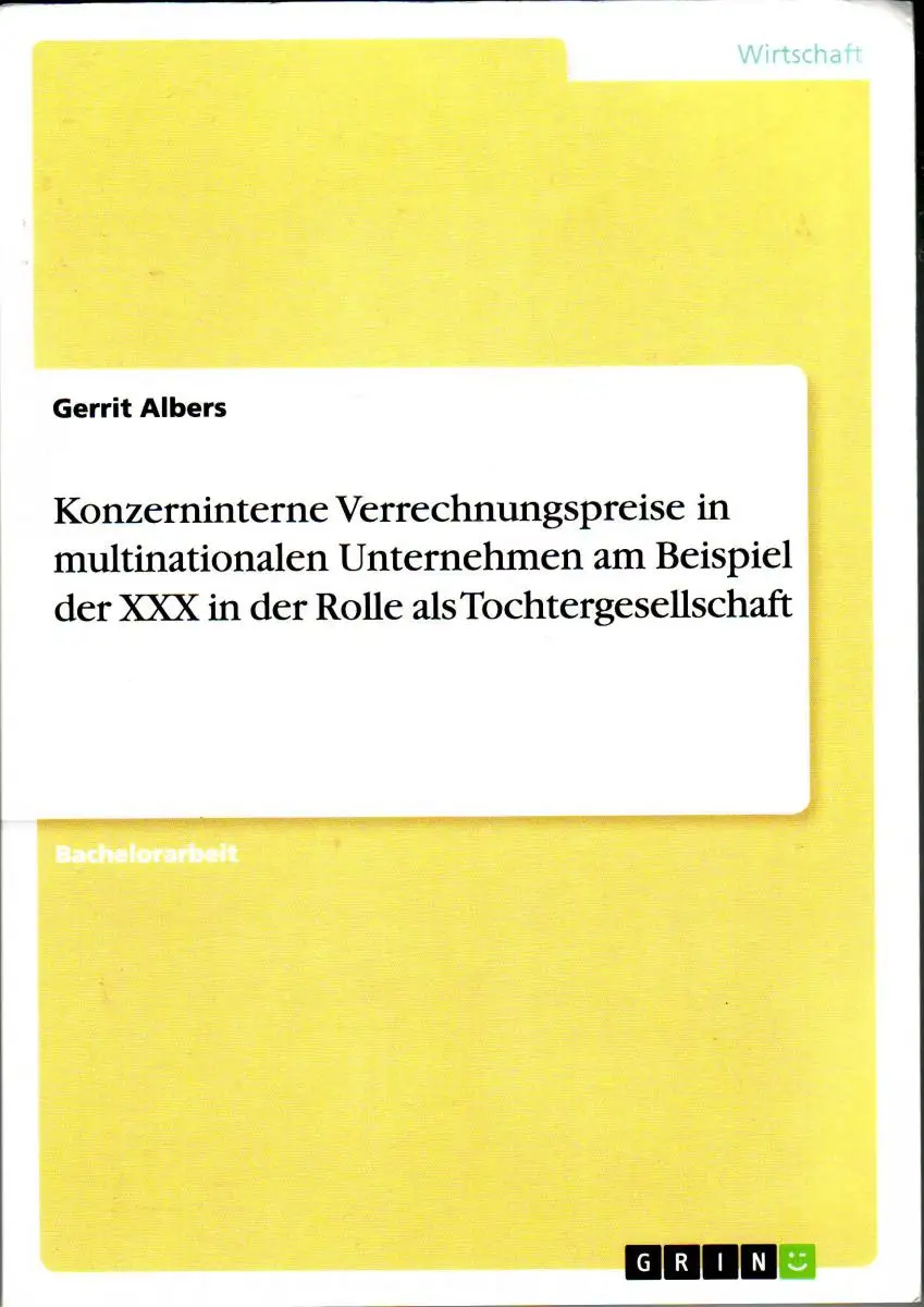 Albers, Gerrit: Konzerninterne Verrechnungspreise in multinationalen Unternehmen am Beispiel der XXX in der Rolle als Tochtergesellschaft.