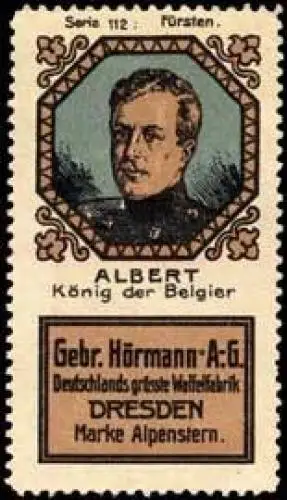 Waffel Marke: Alpenstern, Serie 112, Fürsten, Größe/Zustand: 6x3 , guter Zustand, Original alte Reklamemarke die seinerzeit für die Werbung benutzt wurde