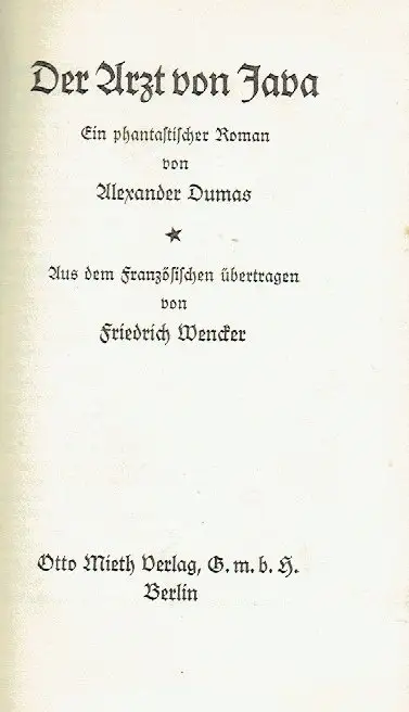 Alexander Dumas: Der Arzt von Java Ein phantastischer Roman.