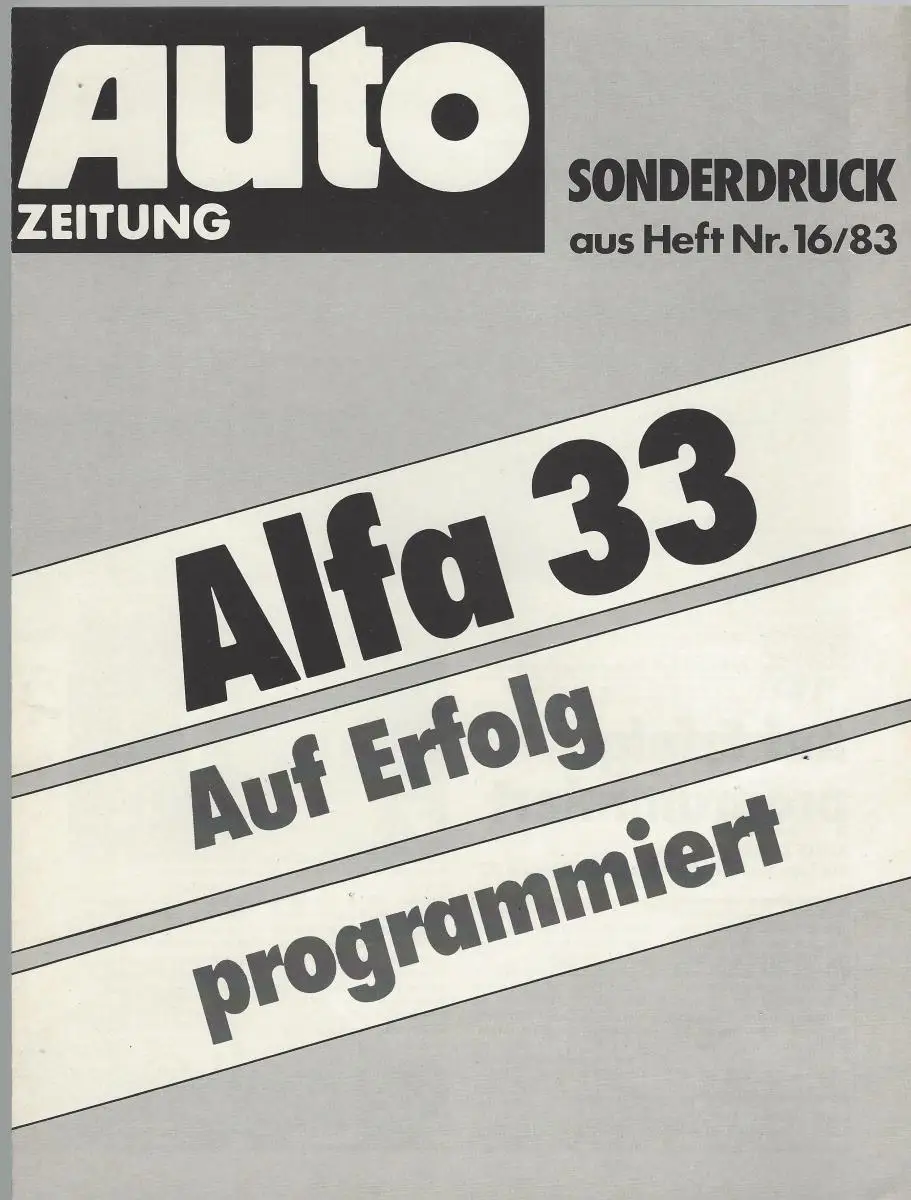 Alfa Romeo. Auto Zeitung Sonderdruck Heft 16/1983. Alfa 33 auf Erfolg programmiert.
