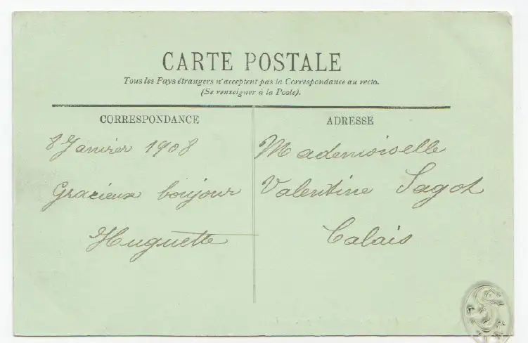 Bemerkungen: Gelaufen: 8. 1. 1908.