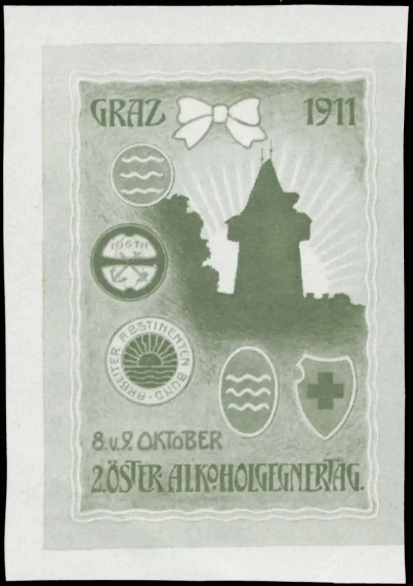 2. Österreich. Alkoholgegnertag, Antialkoholiker, Ausstellung über den Alkoholismus, blaugrau, Größe/Zustand: 6x4 , guter Zustand, Original alte Reklamemarke die seinerzeit für die Werbung benutzt wurde