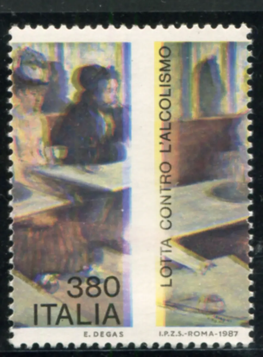Alkoholismusbekämpfung Sorte verschobene Verzahnung Vollgummi - Alkoholismusbekämpfung Nr. 1806a stark verschobene Verzahnung so stark, dass der Schriftzug Italien und der Wert links statt rechts sind - Kat. euro 500 Code 700/8