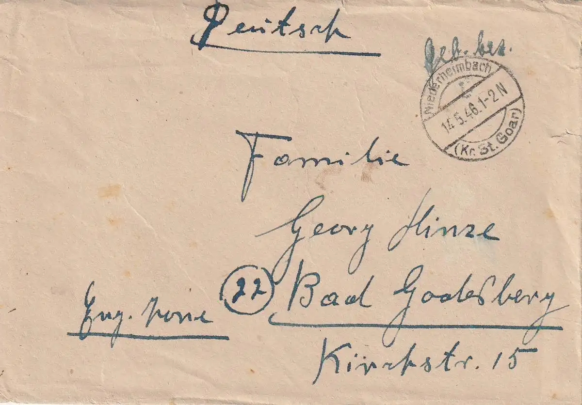 6531 NIEDERHEIMBACH - 1946, Postgeschichte, Barfranktur