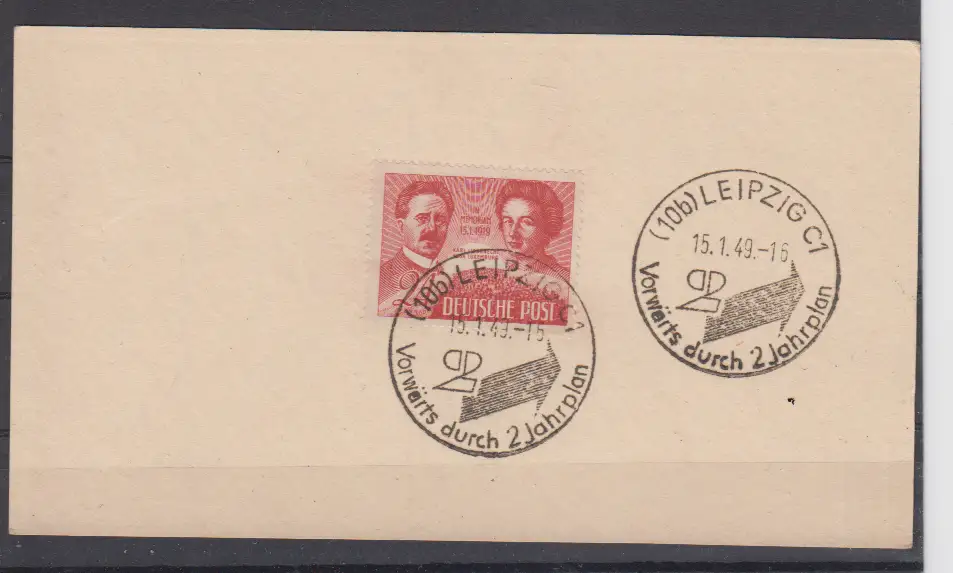 SBZ MiNo. 229 auf adressierter FDC-Karte Leipzig C1/15.1.49/Vorwärts durch 2 Jahrplan