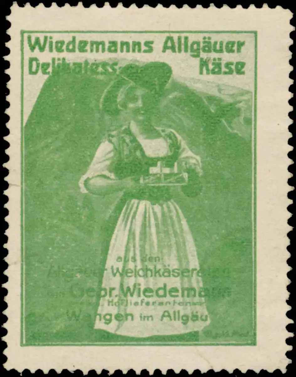 Wiedemanns Allgäuer Delikatess Käse, Größe/Zustand: 5x4 , guter Zustand, Original alte Reklamemarke die seinerzeit für die Werbung benutzt wurde