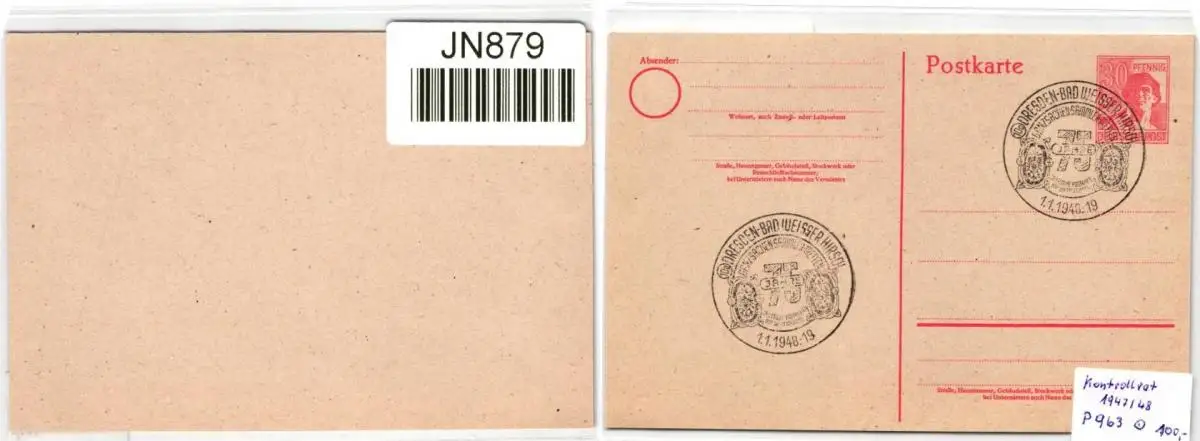 Alliierte Besetzung P 963 als Ganzsache gebraucht #JN879