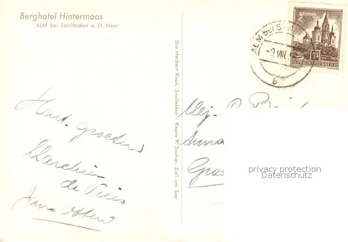 Alm_Saalfelden Berghotel Hintermoos Alm_Saalfelden postalisch gelaufen 1958 Erhaltung siehe scans [WerneD78] WernPID7