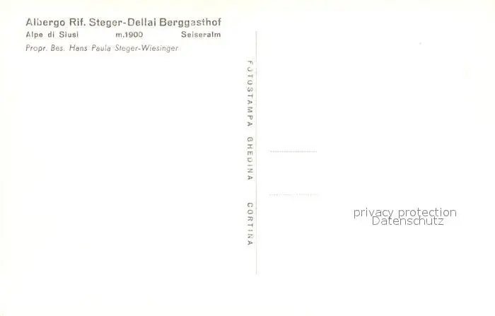 Alpe_di_Siusi Albergo Rifugio Steger Dellai Berggasthof Alpe_di_Siusi postalisch nicht gelaufen 1921-1965 Erhaltung siehe scans [PaolaD17] PaolPID1