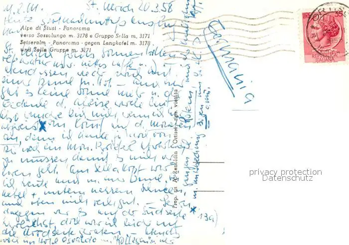 Alpe_di_Siusi Sassolungo Gruppo Sella Alpe_di_Siusi postalisch gelaufen 1958 Erhaltung siehe scans [PaolaD17] PaolPID1