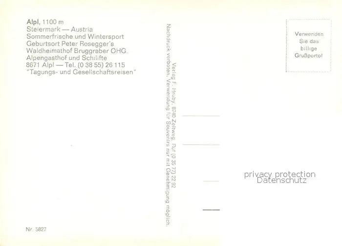 Alpl Waldheimathof Bruggraber Alpengasthof und Schilifte Alpl postalisch nicht gelaufen nach 1965 Erhaltung siehe scans [WerneD78] WernPID7