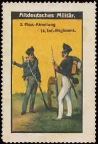 2. Pionier-Abteilung, 14. Infanterie-Regiement, Größe/Zustand: 6x4 , leicht beschädigt, Original alte Reklamemarke die seinerzeit für die Werbung benutzt wurde