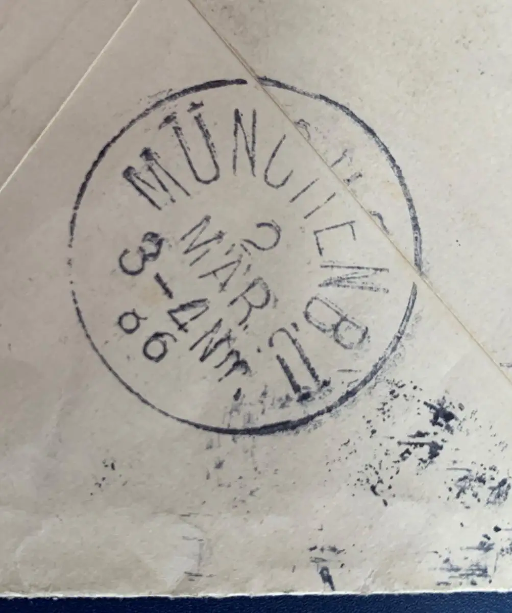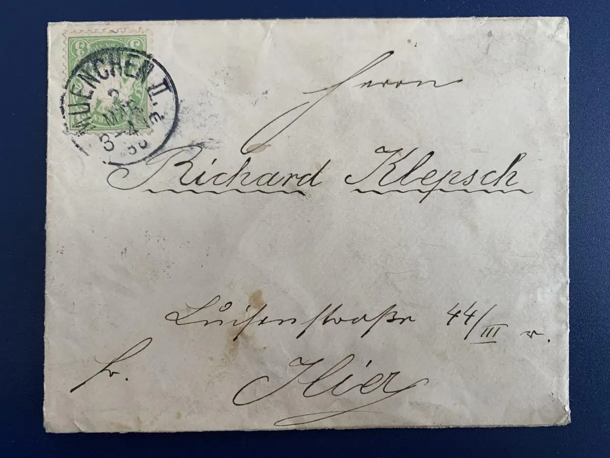 Frankiert mit Mi.Nr. 47 (3 Pfg.), gelaufen lt. Poststempel vom 02.03.1886 in München, Format 122 x 95 mm.