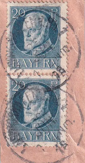 BAYERN 1918 LUDWIG 10 Pf / Mi 97 II PAAR o MÜNCHEN 1 BRIEFSTÜCK