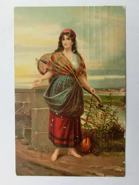 Alte AK Gemäldekarte Frau Musikinstrument [aP92]