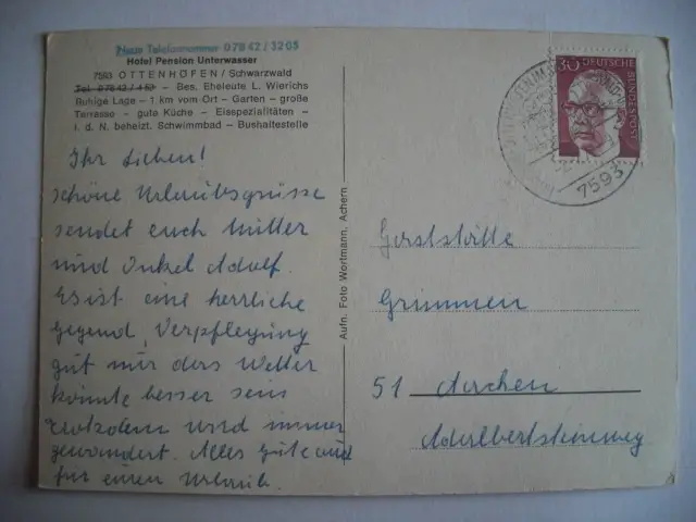 Alte AK Ottenhöfen Schwarzwald Pension Unterwasser [aF306]