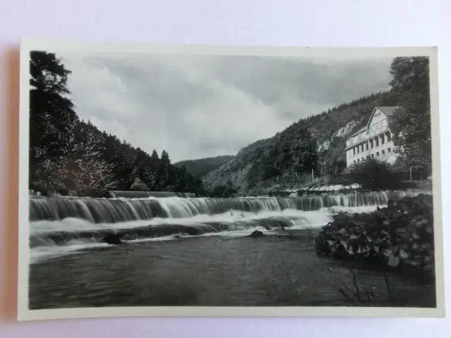 Alte AK Schwarzburg Wasserfall am Kurhaus [aJ437]