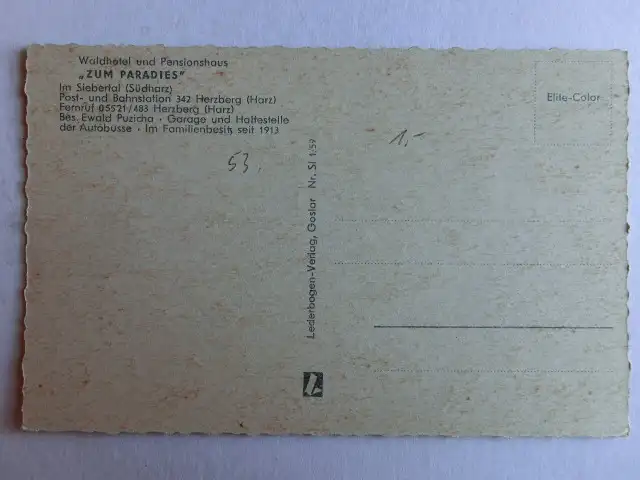 Alte AK Siebertal Waldhotel Zum Paradies Harz [aL356]