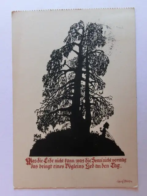 Alte AK Tuschezeichnung Kind Baum Gedicht Spruch [aH660]