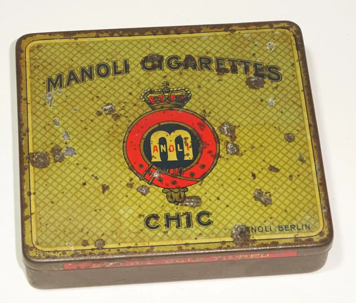 Alte Blechdose Manoli Cigarettes Chic Berlin Zigarettendose um 1900