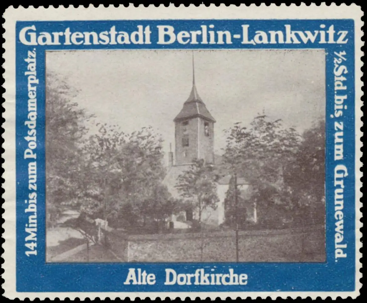Gartenstadt Berlin-Lankwitz, 1/2 Stunde bis zum Grunewald, 14 Minuten bis zum Potsdamerplatz, blau, Größe/Zustand: 5x6 , guter Zustand, Original alte Reklamemarke die seinerzeit für die Werbung benutzt wurde